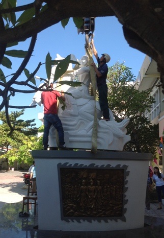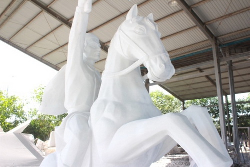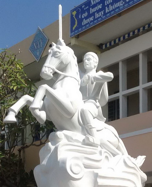 The Quang Trung King monument, designed by artist group of Ngo Thanh Hung and Nguyen Xuan Thuy, was carved by Danang Sculpture Foundation in white marble in 3m high, 2.5m long. The monument has been placed at Tay Son Secondary High School, Danang, Vietnam since November 2015.